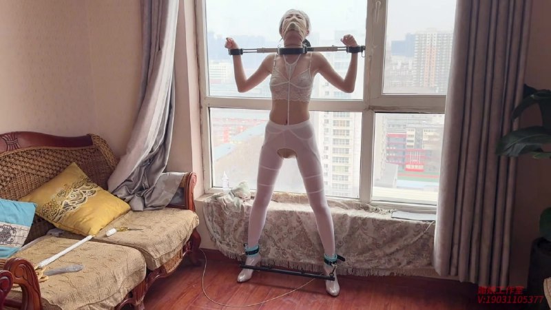 #悦感日记 柒柒体验吊缚 罚站器 电棒 超大直径口球 郊狼电击 棒棒 口水直流