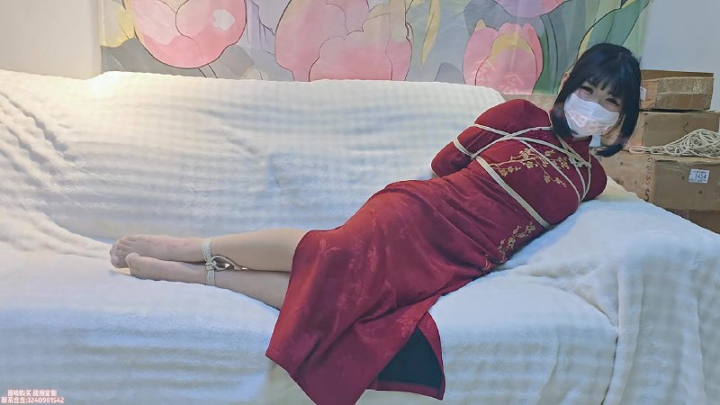 #冷与贝 柴郡猫旗袍捆绑+啵啵贝,M开腿+单腿吊震动糕朝(已打码遮挡毛毛