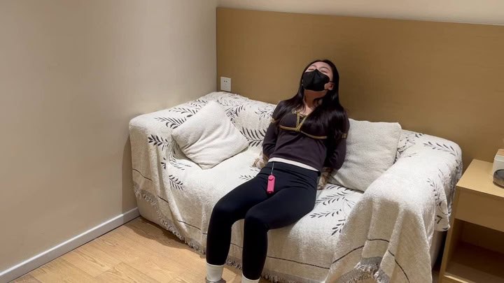 #执念原创 贝壳头瑜伽裤白袜,健身少女强高床上当狗,镣铐铐住双脚,zdb按压下面,紧紧贴合皮肤,zdb套上白袜,展示玉足,足控狂喜